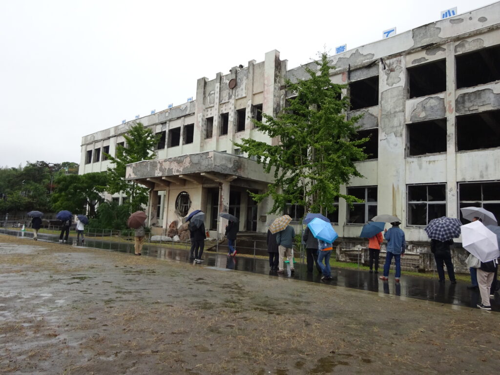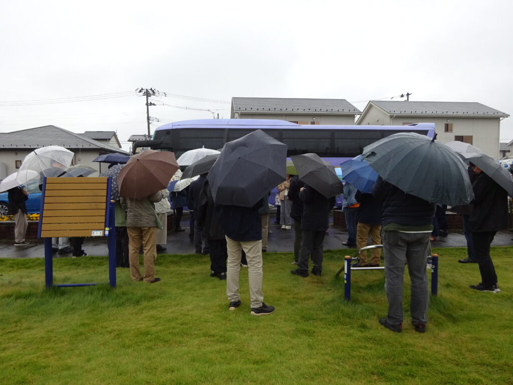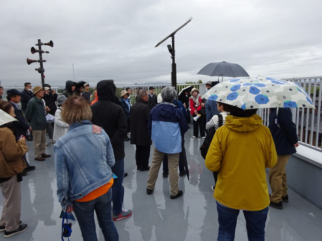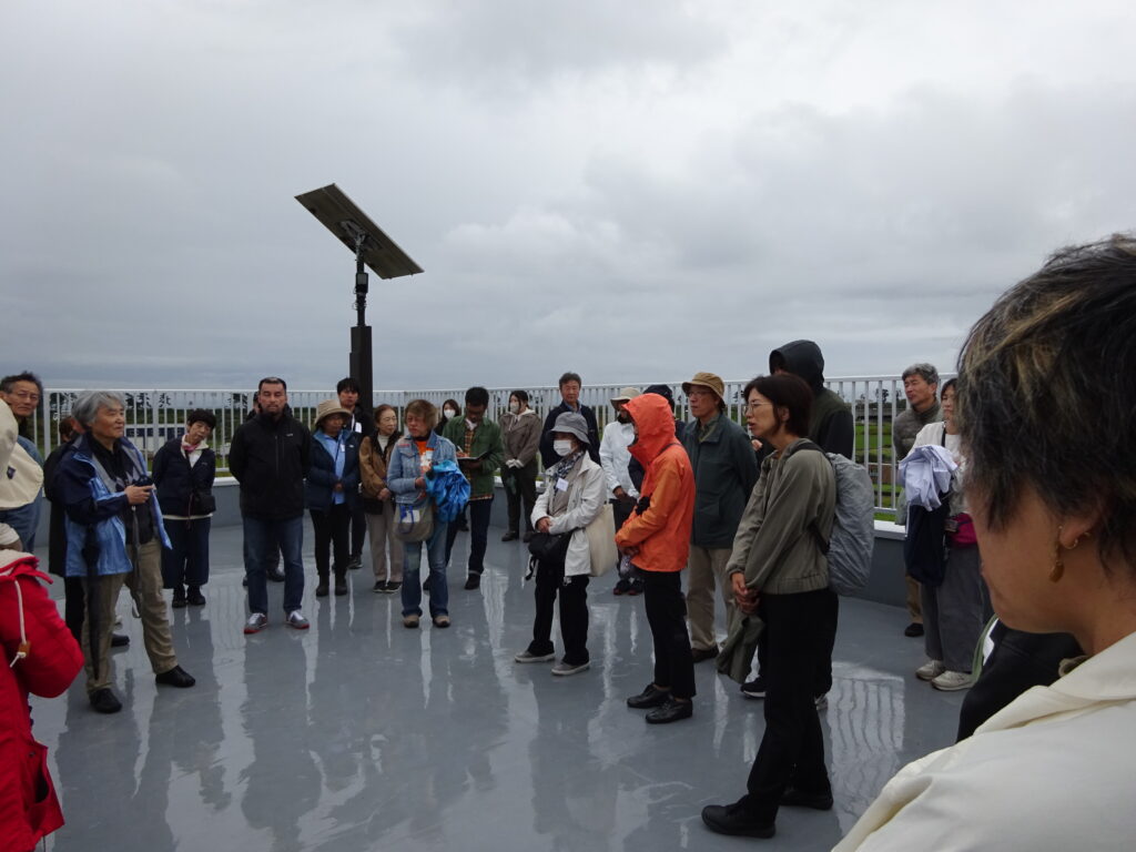 バス視察 三本塚津波避難タワー→井土津波避難タワー→荒浜→東松島おあい地区→石巻市内・門脇小学校・みやぎ東日本大震災津波伝承館→石巻子どもセンターらいつ→道の駅「東松島」→仙台駅