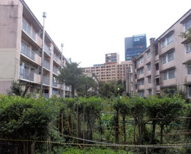 新耐震前の設計ですが、耐震 補強の検討もせずに用途廃止としたのは、住宅公団(UR)が 建替え・再開発を目論んでいるからと思われます。というのも、隣接している都営住宅団地(北青山アパート)が建て替えられ、それにともなって再開発の計画があるのです。