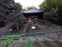 安楽寺は、丘の裏にひっそりと佇むお堂のように見えますが、鎌倉時代に創建された三重の塔だったのが、1673年から81年にかけて上の二層が崩落して一層部分が残ったものです。屋根の出が深く組物、柱も太く遠目から見ると三重の塔を想像することができます。