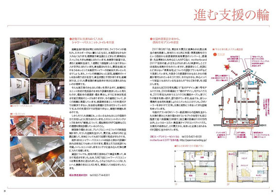 1台1週間で製作でき、試作品は宮城県に搬送して避難所を巡回する。「義援金も大切だが、早急に必要なのは衛生環境改善のためのトイレや風呂の現物支援。少しでも安らげる空間を九州から届けたい」と、協賛してくれる企業や団体を求めている。