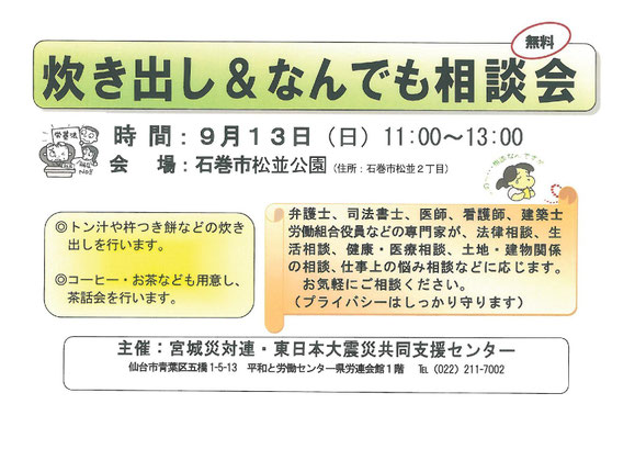 復興応援!新緑まつり (第45回 炊き出し&なんでも相談会) 【宮城災対連】