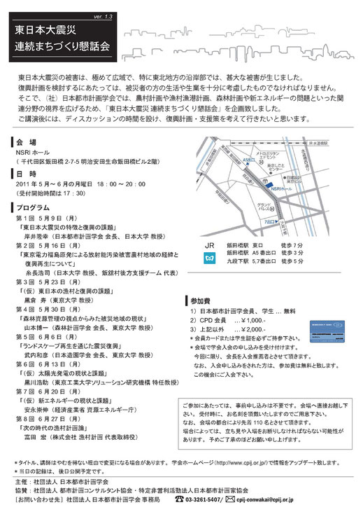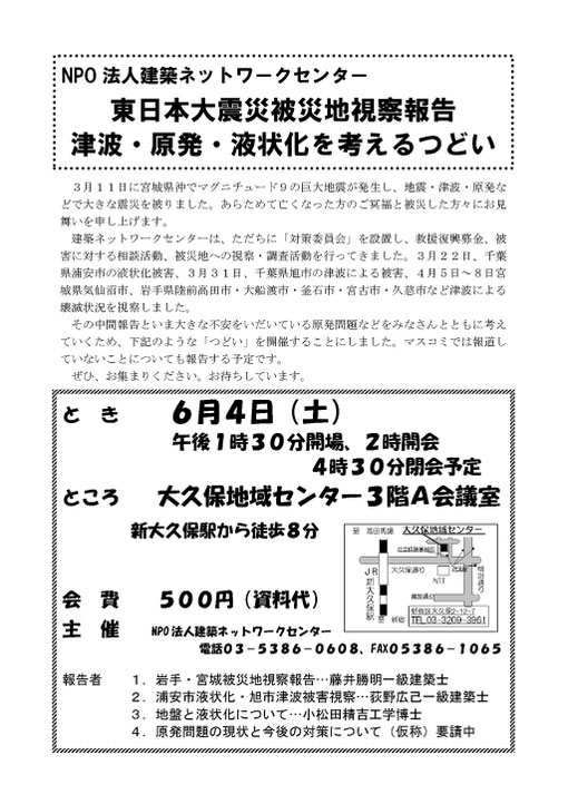 公開勉強会 『東日本大震災・福島原発災害と地域再生』 【NPOとしまち研、新建東京支部】