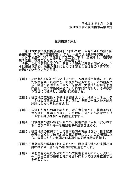 > こういったこと別問題として考えても、全国復興支援会議としての方向性を早急に提案