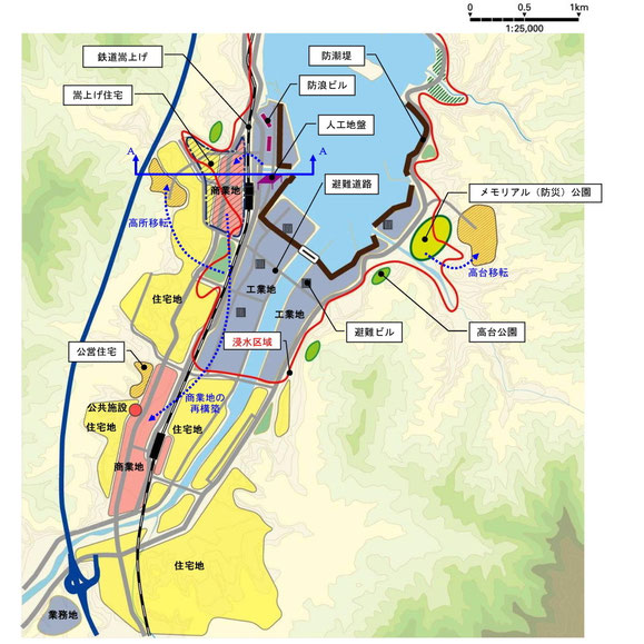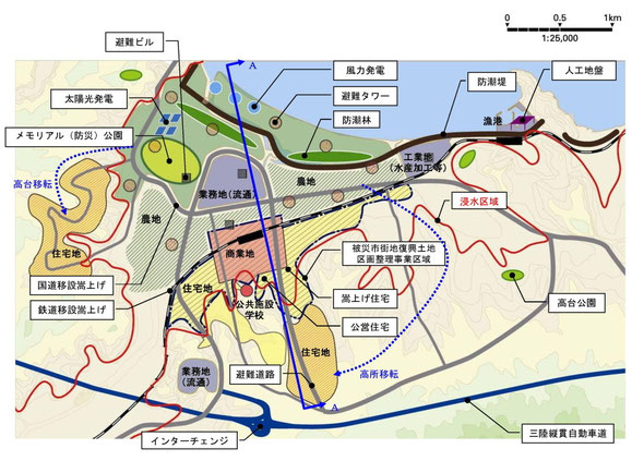 ■パターンA(市街地全壊)の復興まちづくりのイメージ(資料:岩手県)