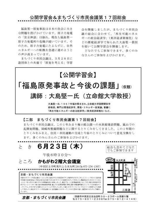 > ◆公開学習会&まちづくり市民会議第17回総会◆
