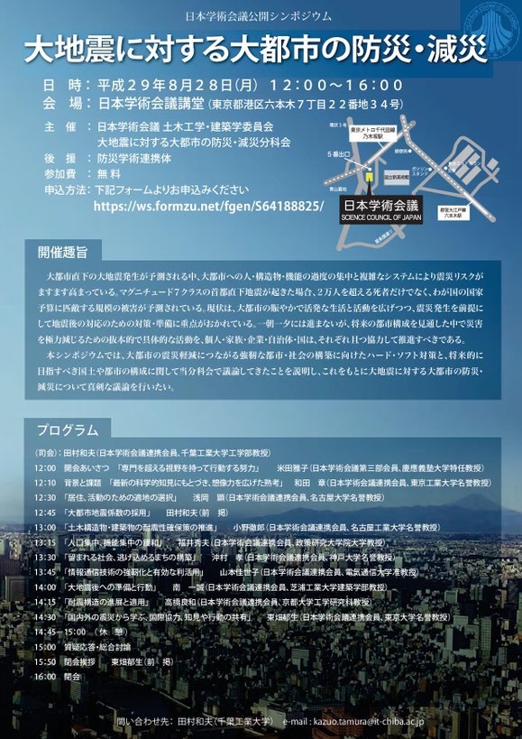 主催:日本学術会議 土木工学・建築学委員会 大震災に対する大都市の防災・減災分科会