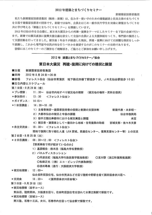 8月24日(金)~26日(日) 「2012建築とまちづくりセミナー」 in 仙台 【新建全国】