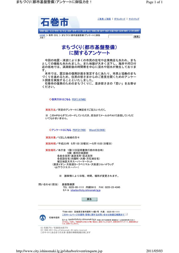 から石巻市>教育・文化 > の中のまちづくり(都市基盤整備)アンケートに御協力を!