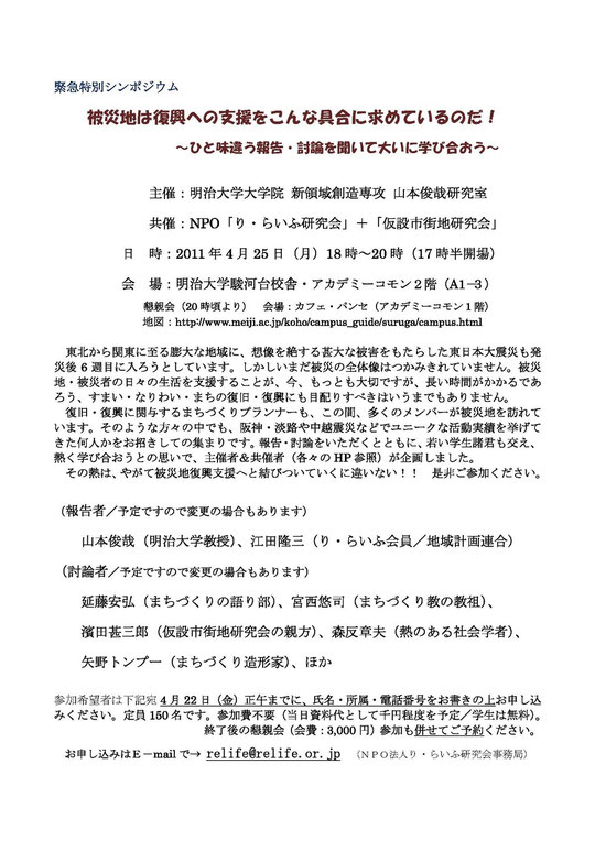 共催:NPO「り・らいふ研究会」+「仮設市街地研究会」
