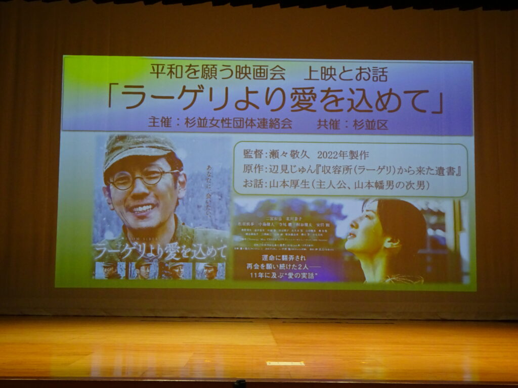 「平和を願う無料映画会 『ラーゲリより愛を込めて』上映とお話」が杉並女性団体連絡会と杉並区の共催で開催されました。杉並区の勤労福祉会館ホールに約300人の方が集いました。