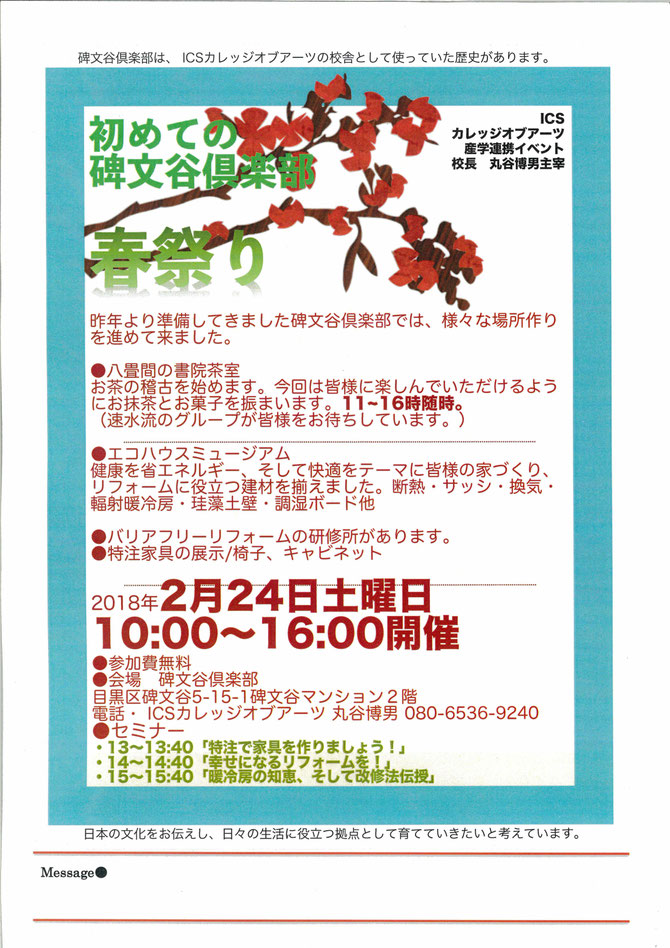 会場:碑文谷倶楽部(目黒区碑文谷5-15-1 碑文谷マンション2階)
