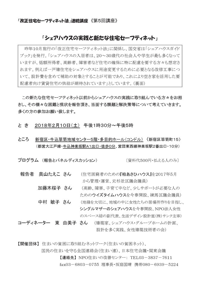 住まいの貧困に取り組むネットワーク、日本住宅会議(関東会議)