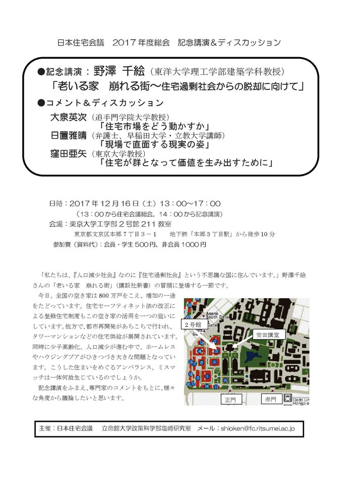 日時:2017年12月16日(土) 13:00~17:00(13:00から総会、14:00から記念講演)