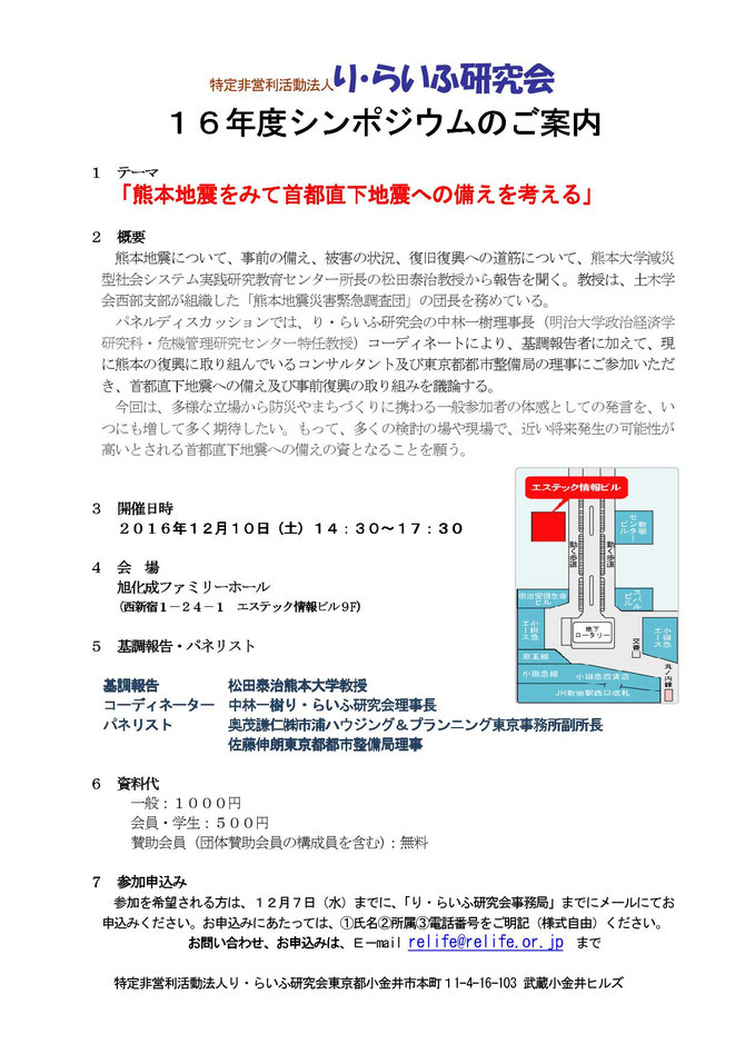 主催:特定非営利活動法人り・らいふ研究会