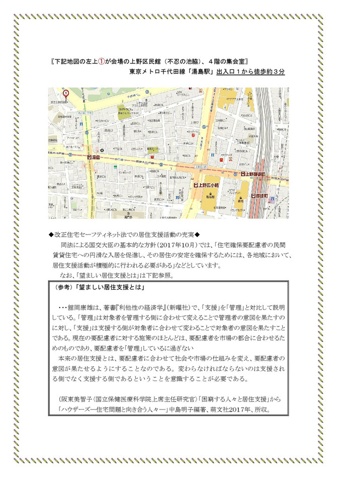 会場:台東区・上野区民館・4階401集会室(台東区池之端1-1-12)