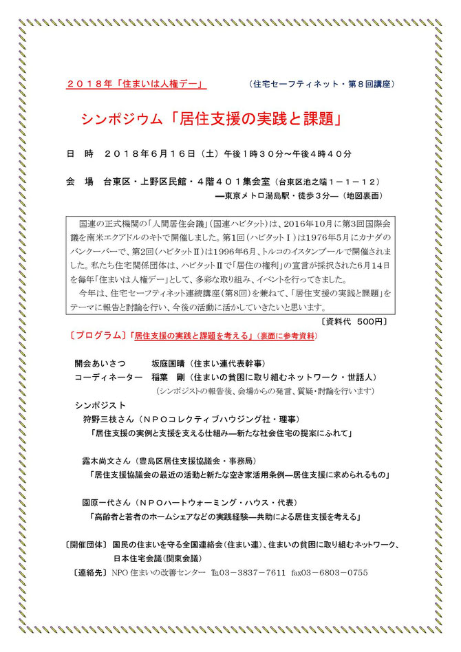開催団体:国民の住まいを守る全国連絡会(住まい連)