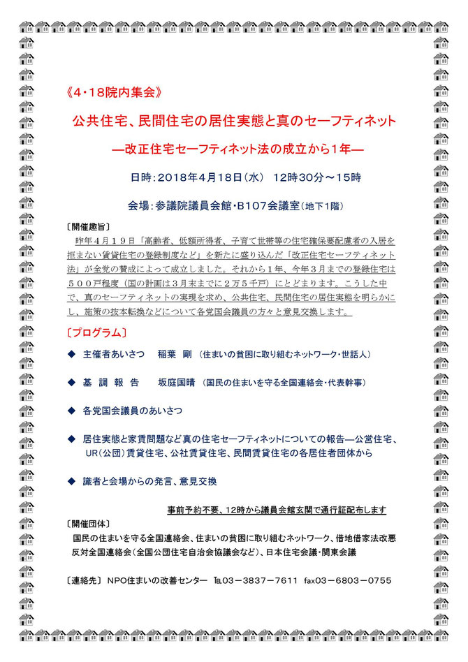 開催団体:国民の住まいを守る全国連絡会、住まいの貧困に取り組むネットワーク、