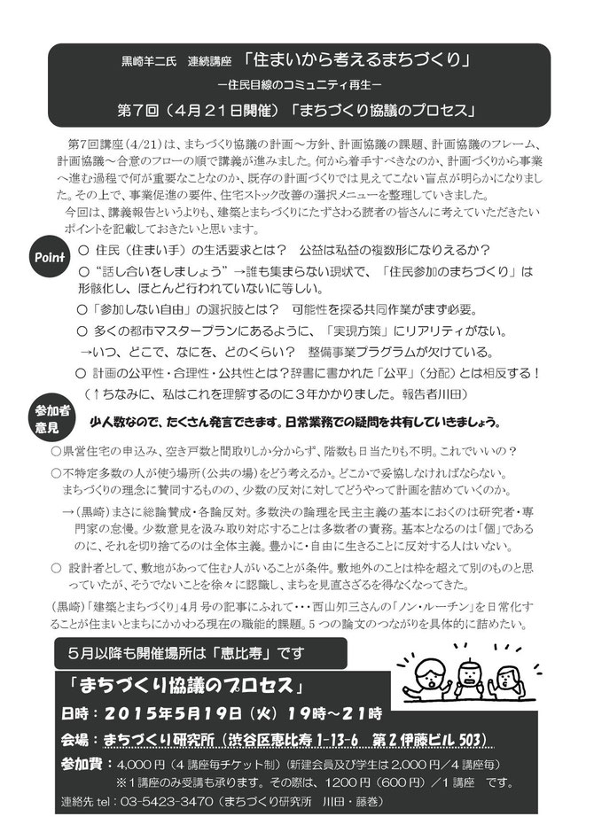 会場:まちづくり研究所(渋谷区恵比寿1-13-6 第2伊藤ビル503)