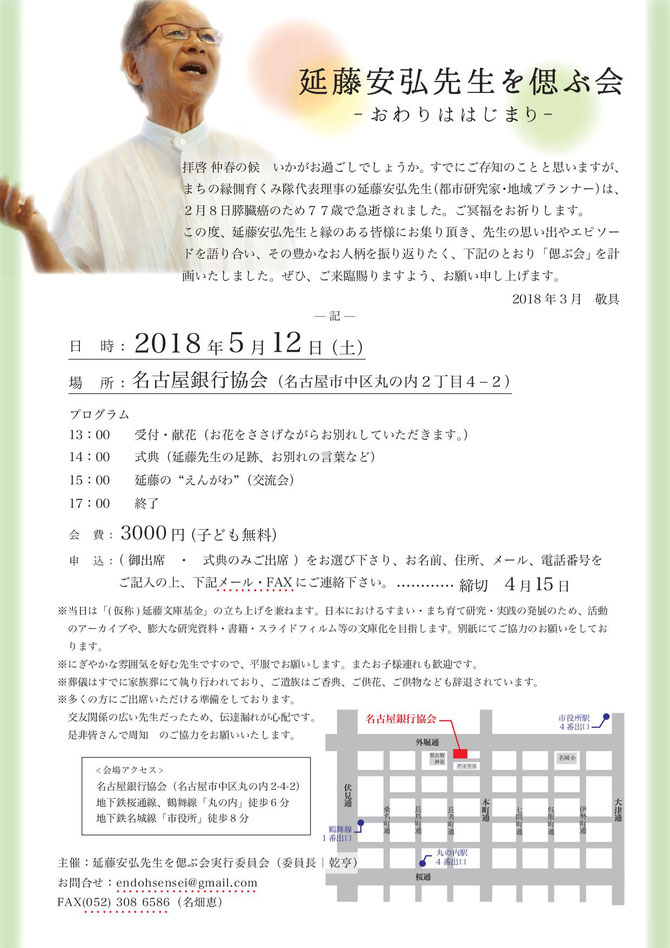 主催:延藤安弘先生を偲ぶ会実行委員会(委員長|乾亨)