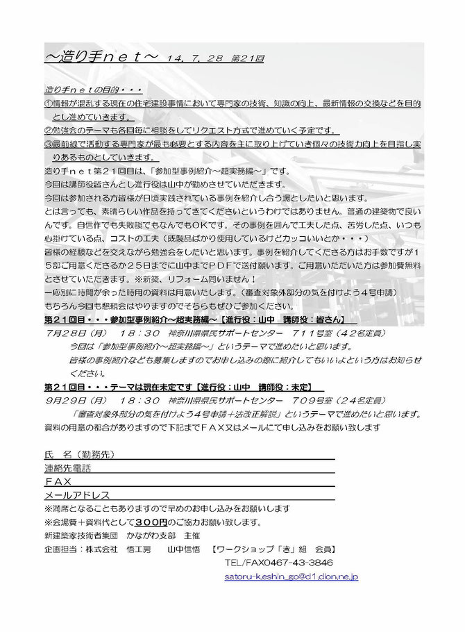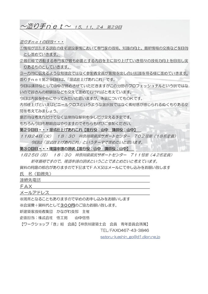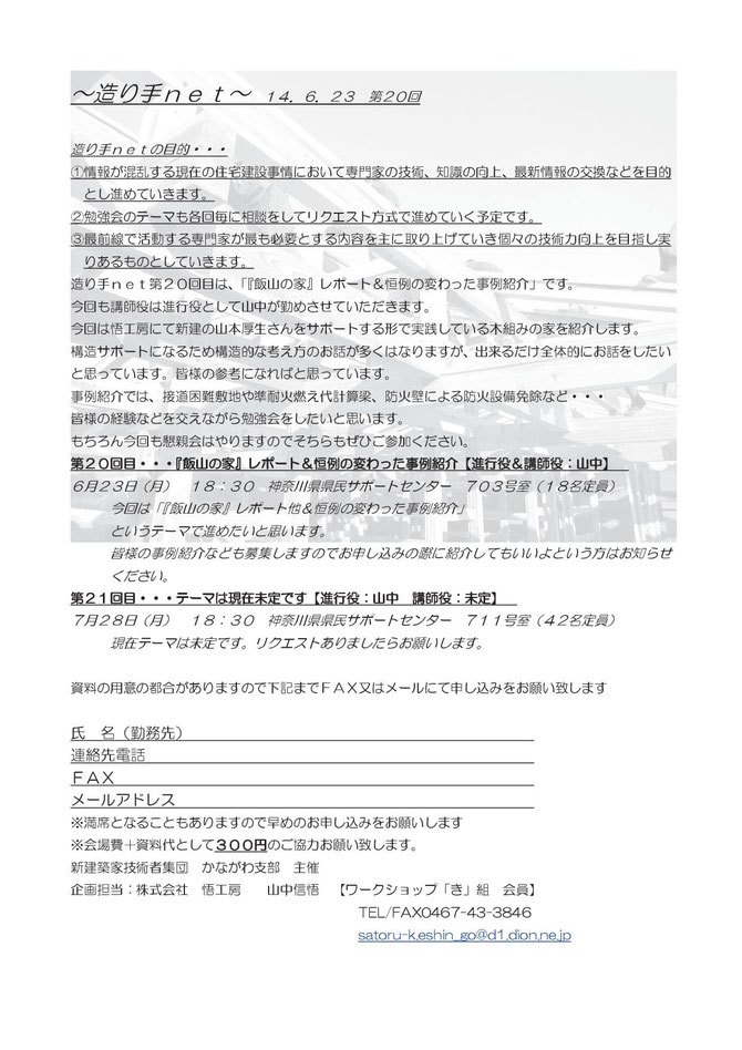 ※見学会当日は特に懇親会等は予定しておりませんのであしからず・・・