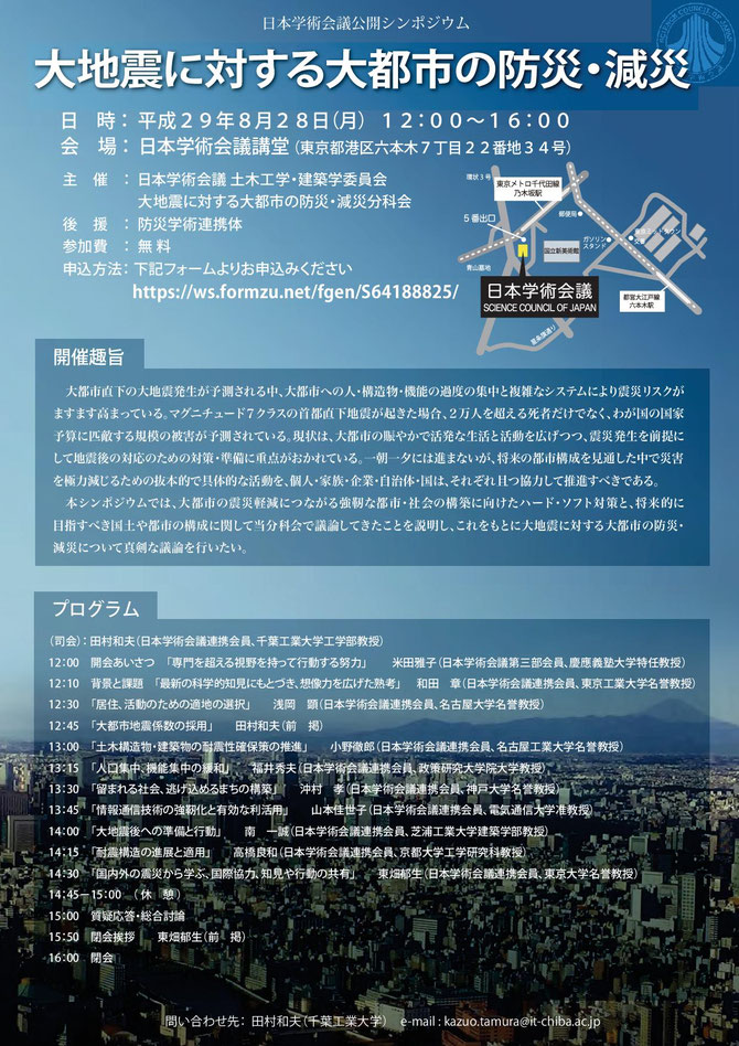 主催:日本学術会議 土木工学・建築学委員会 大震災に対する大都市の防災・減災分科会