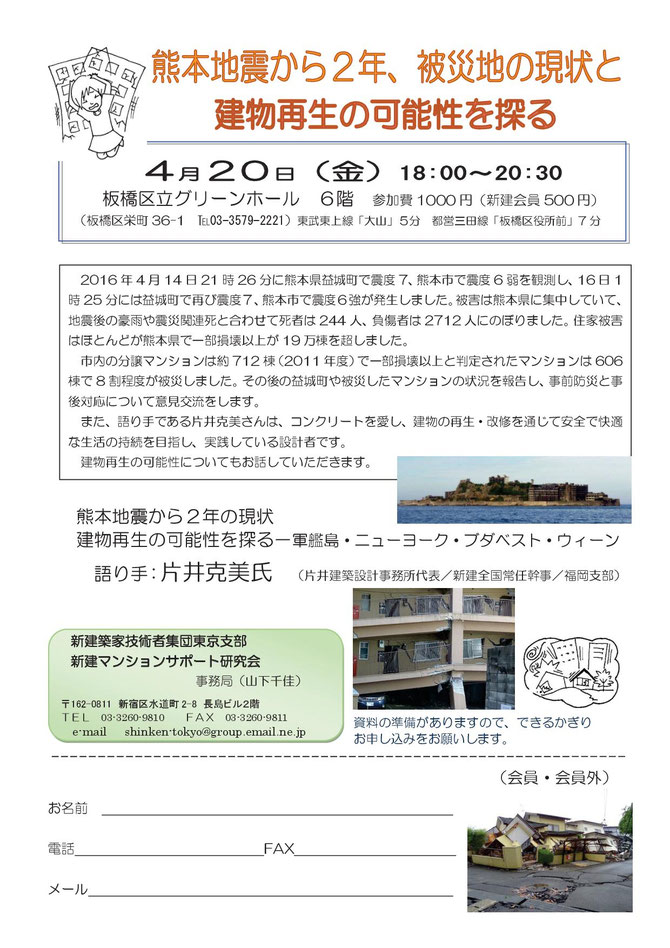 主催:新建築家技術者集団 東京支部、新建マンションサポート研究会