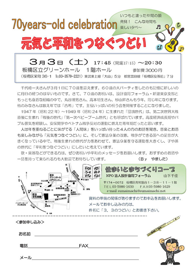 日時:2017年3月3日(土) 17:30~20:30(開場17:15、開始時刻を変更しました)