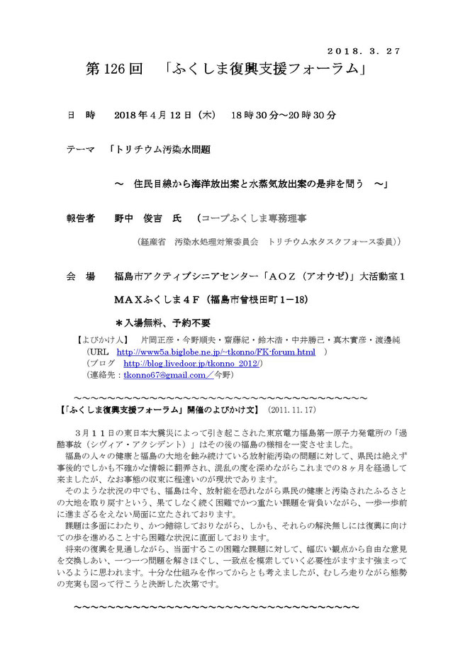報告:野中 俊吉 氏(コープふくしま専務理事(経産省 汚染水処理対策委員会 トリチウム水タスクフォース委員))
